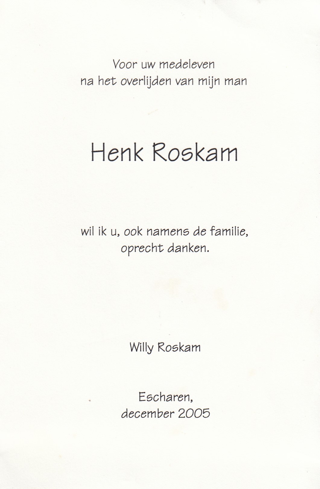 23-4-2026 30-11-2005 Roskam, Henk Doopnamen: Henk Roepnaam: Henk Achternaam: Roskam Overleden: 30-11-2005, Escharen Partner van: Willy Roskam Archiefnummer: 11-2-1