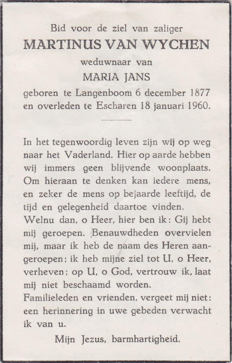 Bidprentje Martinusvan Wychen