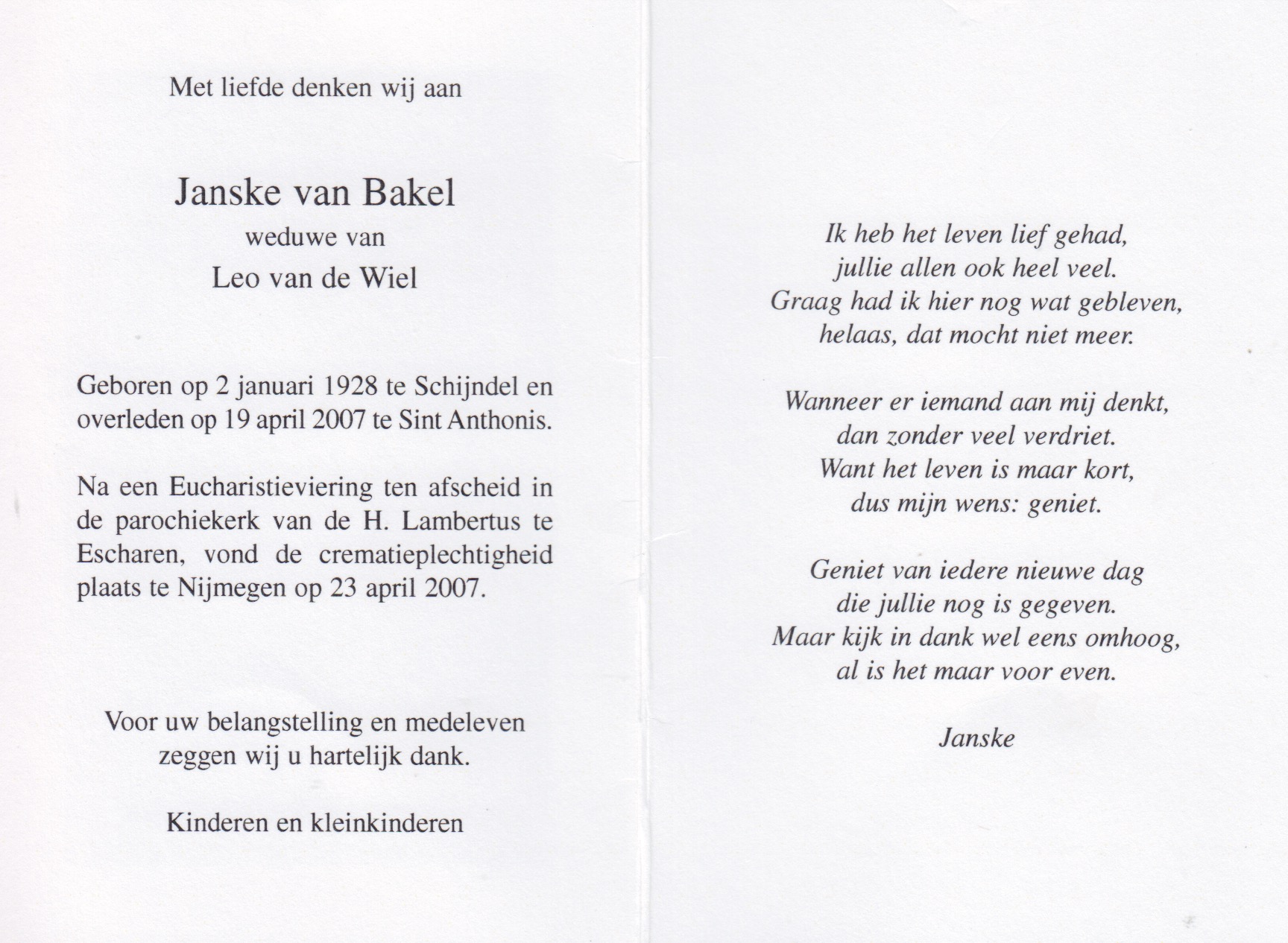 uitvaart te Escharen, crematie